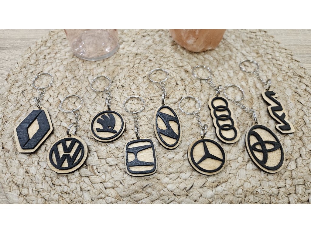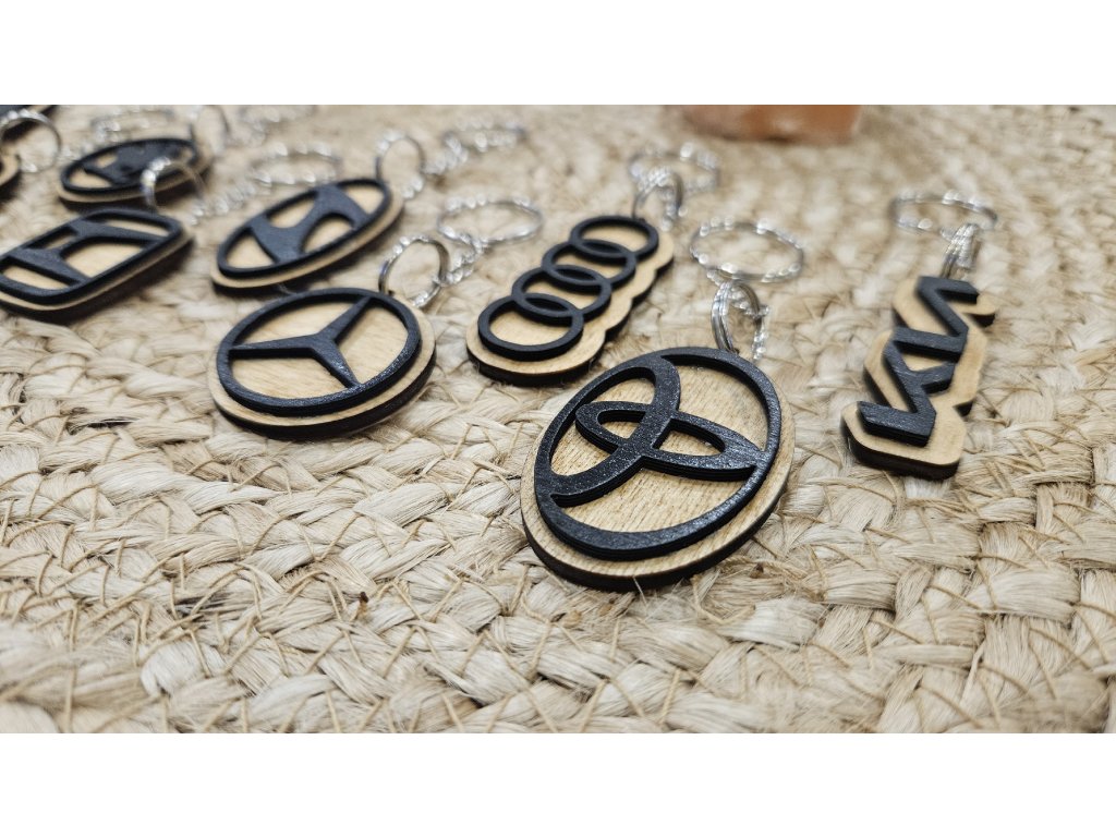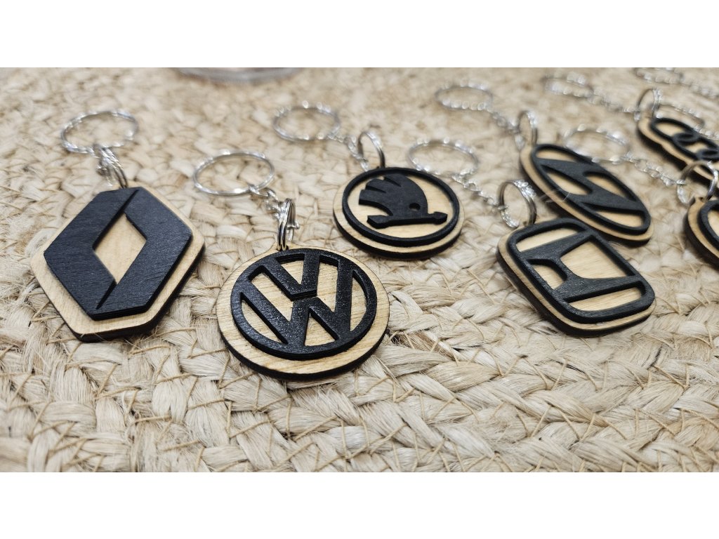 Gravírovaný prívesok na kľúče s logami automobilových značiek je štýlový a osobný doplnok, ktorý ocenia všetci milovníci áut. Tento kvalitný prívesok je ošetrený olejom s dekorom orech, čo mu dodáva elegantný a prírodný vzhľad. Zároveň je zapečatený lakom, ktorý zabezpečuje jeho odolnosť voči poškodeniu a zachováva jeho vzhľad dlhú dobu. Ideálny ako darček alebo osobný doplnok pre fanúšikov automobilov. Prívesok je vyrobený z brezovej preglejky o hrúbke 3mm a leteckej 2,5mm preglejky.